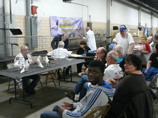Mais l’escapade la plus importante, en temps et en distance fut la NYBS, l’expo de jeunes sujets à Louisville dans le Kentucky. 4000 pigeons, participation de la plupart des clubs des USA, rencontres émouvantes avec nos amis vus il y a 25 ans lors de notre premier voyage, avec la promesse de se revoir dès l’année prochaine !! La plupart des races américaines étaient présentées en grand nombre parfois : 200 show racers, 100 Kings, des Queue de Paon, des Long Face, Tambours Anglais, 150 African Owls, 60 Cravatés Orientaux, 80 Cravatés Orientaux anciens. ! etc..etc..