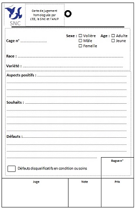 Carte de jugement officielle, homologuée par la SNC et par l’Entente Européenne d’Aviculture.